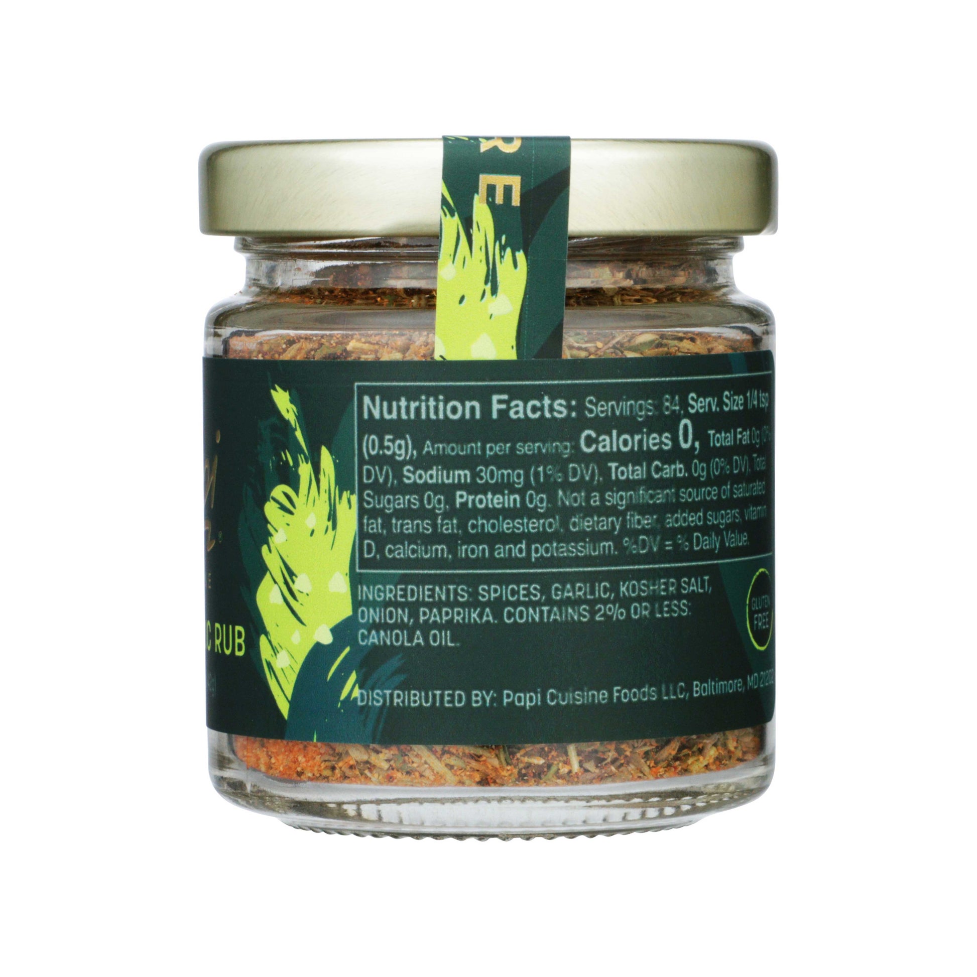 Nutrition Facts: Servings: 84, Serv. Size 1/4 tbsp (0.5g), Amount per serving: Calories 0 Total Fat (0% DV), Sodium 30mg (0% DV),Total Carb.0g (0% DV),Total Sugars 0g, Protein 0g. Not a significant source of saturated fat, trans fat, cholesterol, dietary fiber, added sugars, vitamin D, calcium, iron and potassium. %DV = %Daily Value.