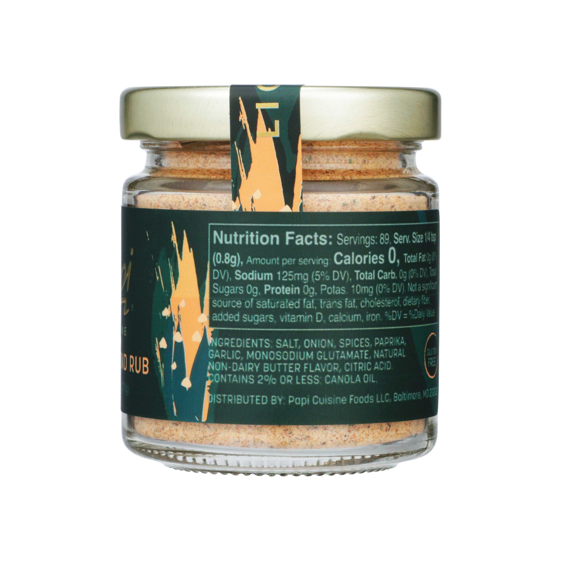 SALT, ONION, SPICES, PAPRIKA, GARLIC, MONOSODIUM GLUTAMATE, NATURAL NON-DAIRY BUTTER FLAVOR, CITRIC ACID. CONTAINS 2% OR LESS: CANOLA OIL
