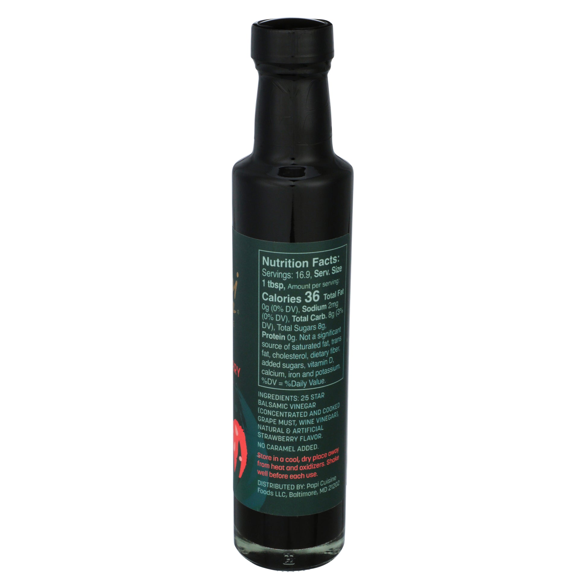 25 STAR BALSAMIC VINEGAR (CONCENTRATED AND COOKED GRAPE MUST, WINE VINEGAR), NATURAL & ARTIFICIAL STRAWBERRY FLAVOR. NO CARAMEL ADDED.